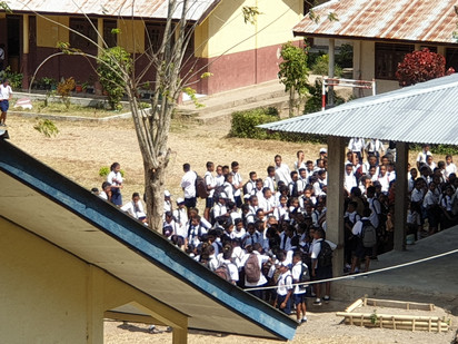 They have 3 different uniforms in Flores, for the elementary school, secondary school and high school, and usually, all the people wear the same colours. In Flores the school is mostly public and Catholic, only a few ones are Muslim schools.